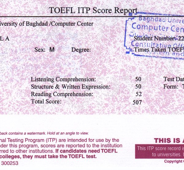 TOEFL - ITP Certificate