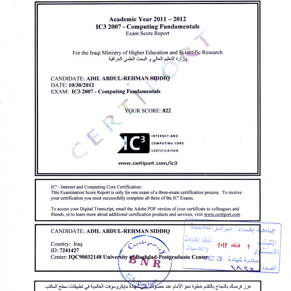 IC3 Certiport International Certificate