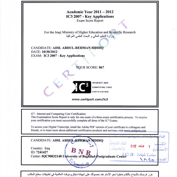 IC3 Certificate Key Applications