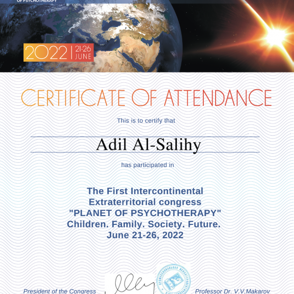 شهادة المؤتمر العلمي الدولي: (كوكب العلاج النفسي 2022: الأطفال.. الأسرة.. المجتمع.. المستقبل)