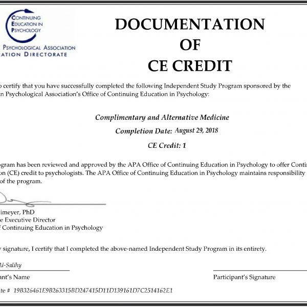 Complimentary and Alternative Medicine Certificate