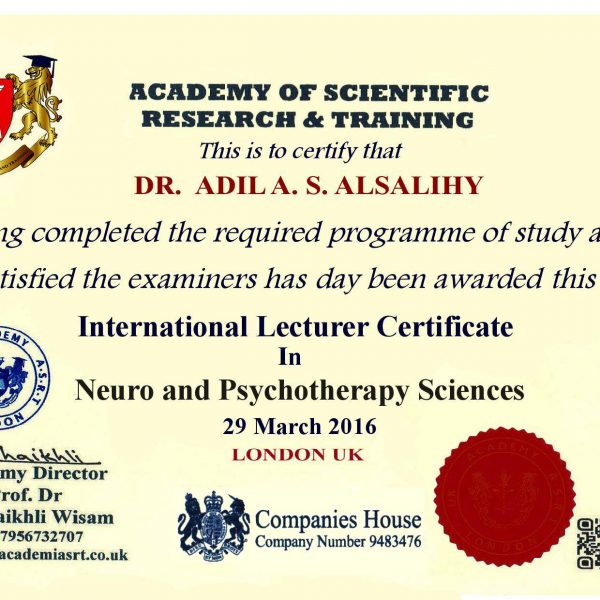أعلى شهادة بالعالم في العلاج النفسي